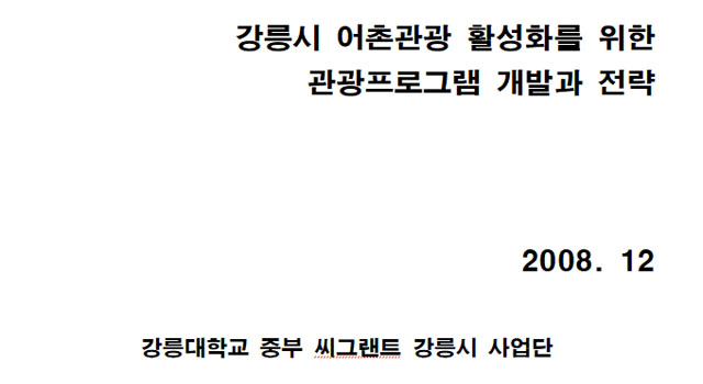 문화·관광·농어촌개발 강릉시 어촌관광 활성화를 위한 관광프로그램 개발과 전략